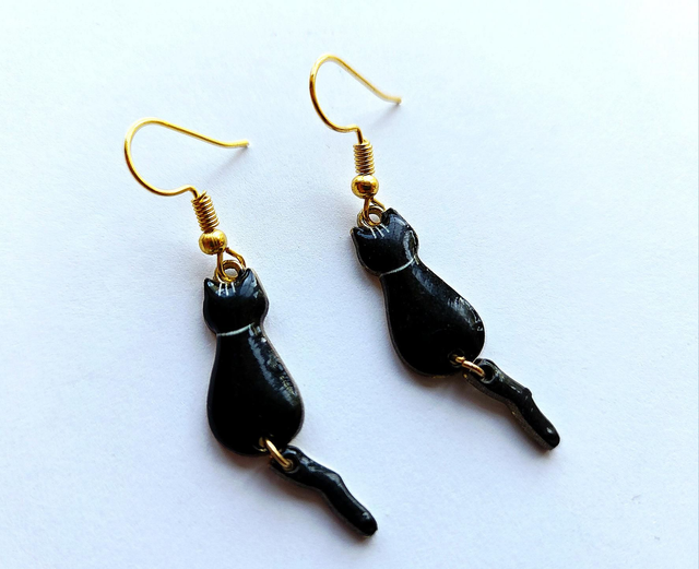 'Black Cat' Waggly Tail Earrings Gold Plated (nickel free)