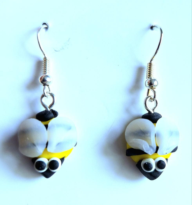 Handmade Polymer Clay Bee Earrings Silver Plated (nickel free)
